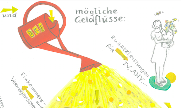 Die drei Illustrationen im Format A3 stellen drei Themenkomplexe dar und stammen aus der Hand von Gerda Tobler alias Sofie Honig. Sie konnten während der groundfundings-Aktion auf 100-days.net im Original oder als qualitativ hochwertige Farbdrucke gekauft werden und unterstützten so die Realisierung unseres Heftes.